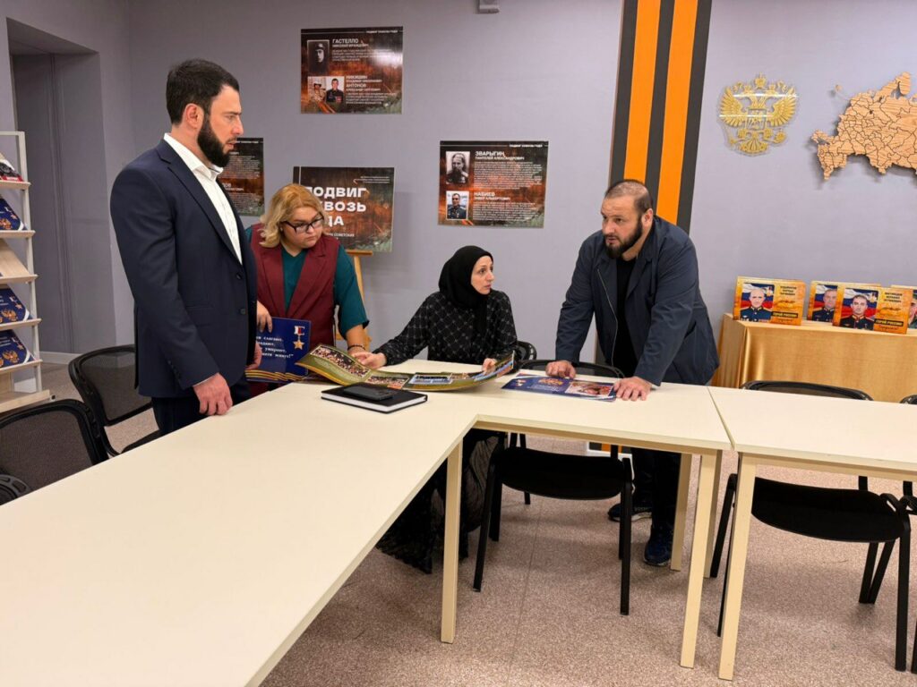 В Махачкалинской школе № 54 прошла рабочая встреча, на которой директору школы Сапижат Мазаевой — матери первого Героя России на СВО Нурмагомеда Гаджимагомедова, доверенному лицу Президента России, вице-президент Ассоциации волонтёров СВО Екатерина Суркова представила концепцию музейной композиции, посвящённой первому Герою России, погибшему в зоне СВО.